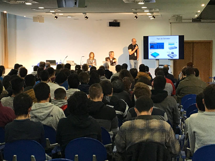 Además de compartir espacio con Maria Goitia, Directora del Centro y Juan Carlos García, Presidente de la Fundación TAC (que hizo una presentación inicial hablando también de cuestiones de Seguridad) e Inés Menendez, profesora del Departamento de Informática del centro que clausuró el evento, tuve el placer de ver en acción al otro ponente invitado, César Granda (@CacharroHacks).